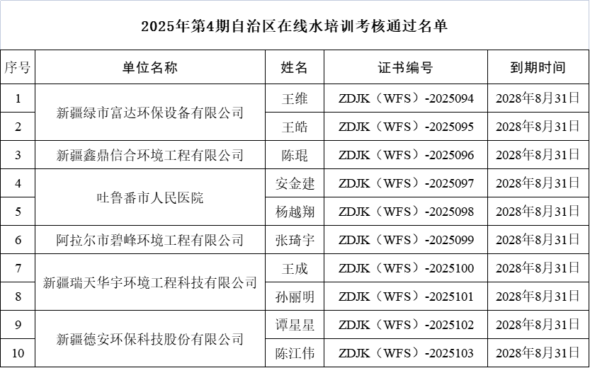 名單公布 | ?2025年第4期自治區(qū)污廢水連續(xù)自動監(jiān)控系統(tǒng)運行人員培訓班考核通過名單公布