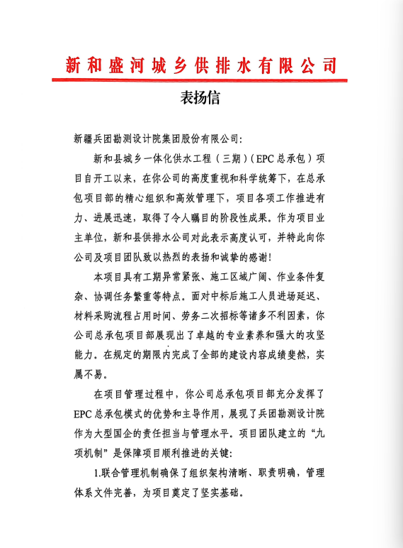 喜報頻傳!兵團設計院收獲多封表揚信。