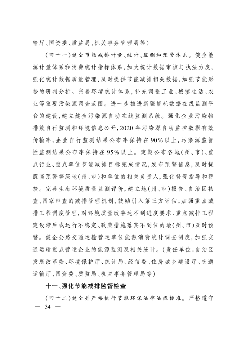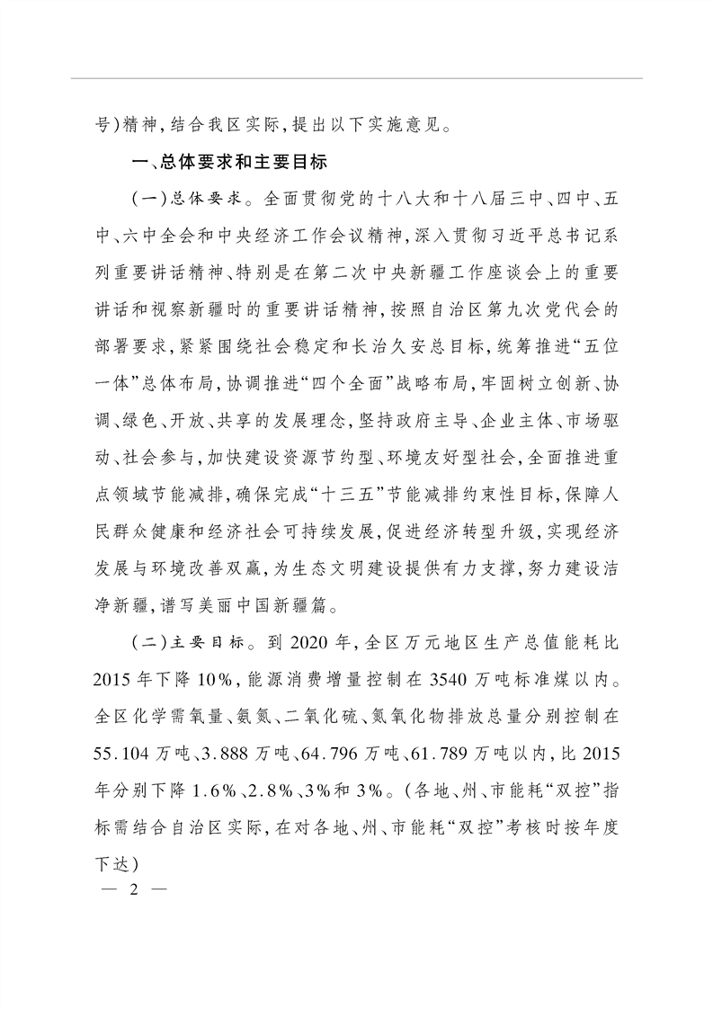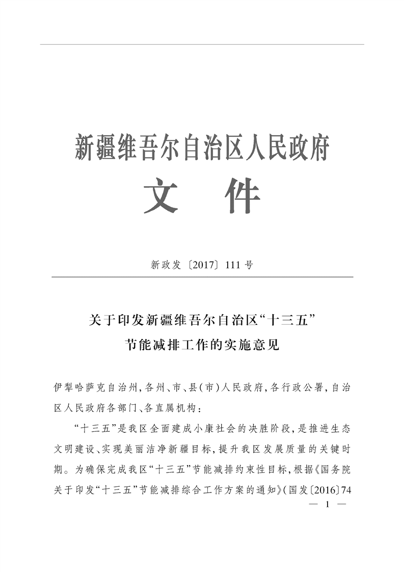 關(guān)于印發(fā)新疆維吾爾自治區(qū)“十三五”節(jié)能減排工作的實施意見